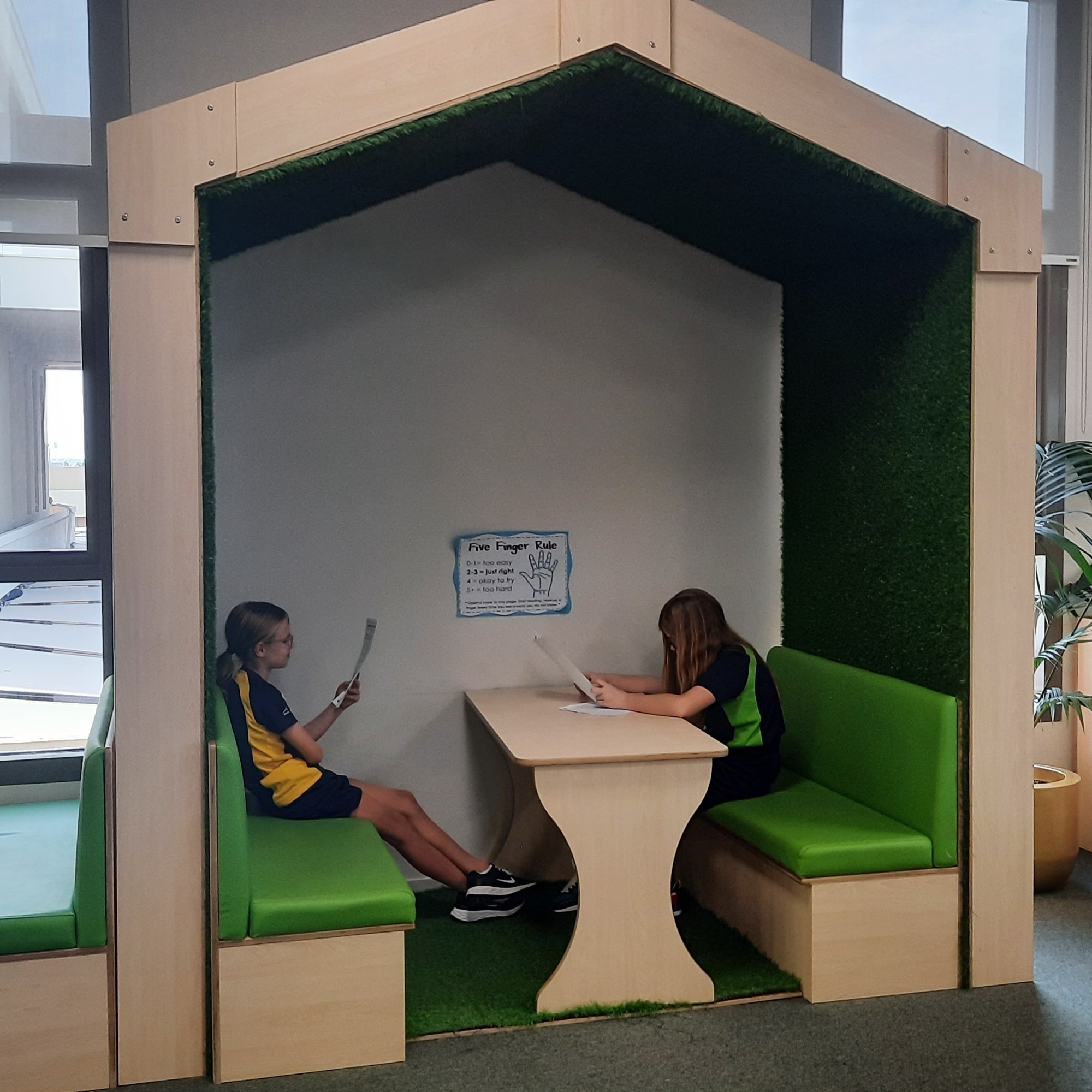 Photos above: Grade 5 students engaged in daily morning routine of reading the newspaper
