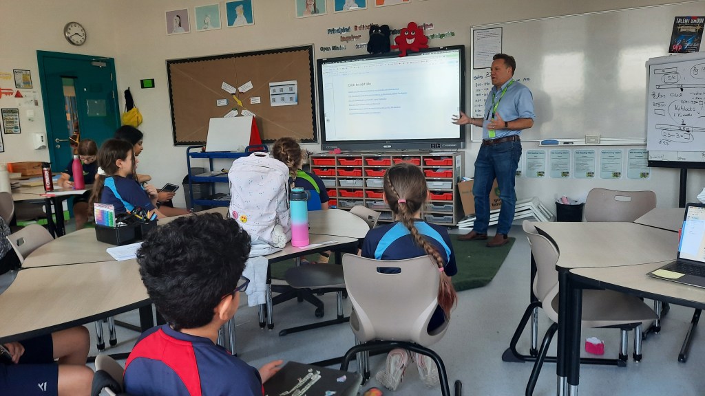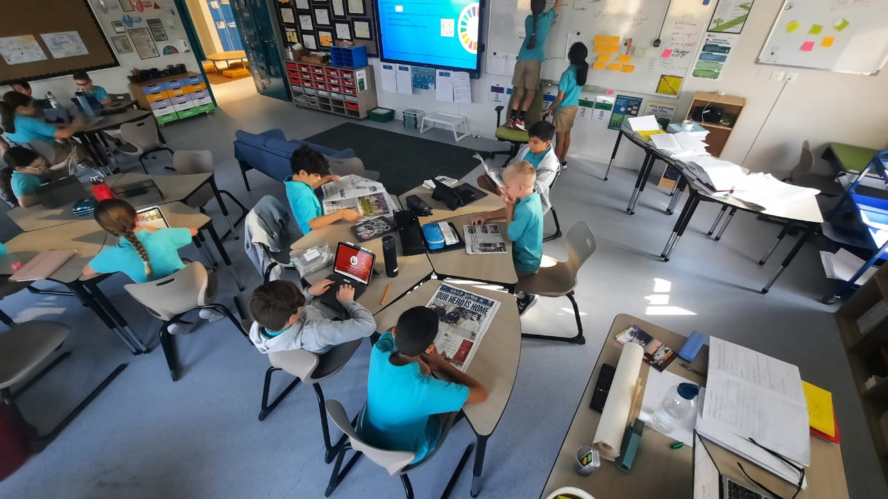 Photos above: Student journalists from grades 4 and 5 researching how to write a newspaper report